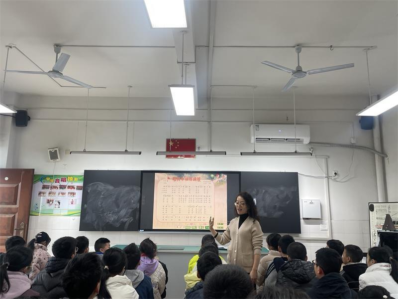 本次活动由张娟老师执教《唱的幸福落满坡》,张老师以江南民歌导入,利用大单元教学设计,从“小桥流水”游览至“北国风光”,用高亢激昂的北方民歌激发学生演唱兴趣。随后,采用不同方式练唱歌曲,并在巩固环节加入方言演唱,感受歌曲中散发出的幸福感和自豪感。课堂最后,通过观看视频,引领学生走进陕西人民热闹的劳动场景,升华主题。