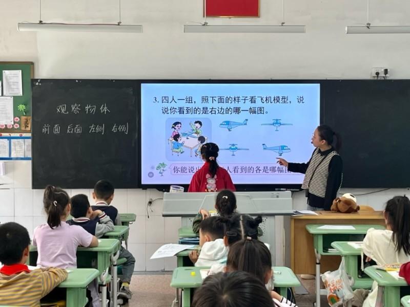 首先由潘雅雯老师执教二年级上册《观察物体》一课,潘老师从古诗《题西林壁》导入,引导学生观察教室前面和后面拍的照片以及从小猴的不同角度观察到的照片,让学生初步体会从不同位置观察物体所看到的形状通常是不一样的,并学会根据看到的形状正确判断观察者的位置。接着由周娟娟老师执教一年级上册《认识10》一课,周老师通过精心环节的设计和激励语言的引导,让学生积极地探索、发现,逐步感知新知、领悟新知,使学生真正理解10的意义。课后,老师们针对主题对两节课提出了自己的想法。