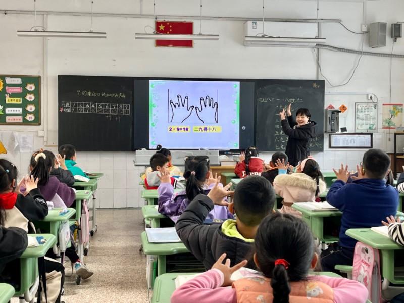 姚丽琴执教二年级上册《9的乘法口诀和用口诀求商》一课,姚老师用“教学评”一致性的理念指导课堂教学,让学生自己经历编制口诀的过程,引导学生从不同角度去发现规律,寻找记忆口诀的途径,让学生在轻松愉快的氛围中亲自体验数学知识的产生、形成过程。课后,大家对这节课进行了点评。计芳娟老师提到,姚老师的这节课从《西游记》导入新课,符合二年级学生的年龄特点,极大地调动了学生的学习兴趣。费婷老师提到,姚老师在设计教学时准确地把握了本节课的重点,在形式多样的练习中,学生能较好地应用了口诀去解决问题。