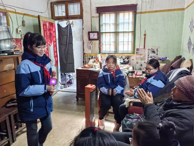 活动中,队员们满怀豪情地跟王德余爷爷学唱《中国人民志愿军战歌》,为爷爷进行了慰问演出,表演歌曲《唱支山歌给党听》等节目,表达对老兵崇高的敬意。随后,王爷爷为队员们讲述了抗美援朝战场上亲历的战斗故事,队员们仿佛穿越时间的隧道,跟随爷爷回到了硝烟弥漫的战场,深深感受到老一辈军人保家卫国的献身精神和坚强意志。最后,王爷爷拿出了珍藏的勋章,并鼓励队员们努力学习,将来为社会做贡献。