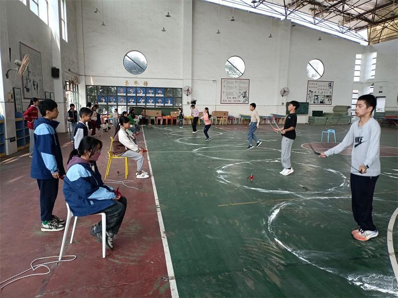 随着一声令下,同学们纷纷拿起手中的跳绳,脚在地面不停地跳跃,绳子在手中飞速地旋转,翻飞的跳绳在孩子们的手中翩翩起舞,“呼呼呼”甩动声萦绕耳畔,每个人的心中都秉持着为集体争光添彩的信念,眼神中充满着自信。