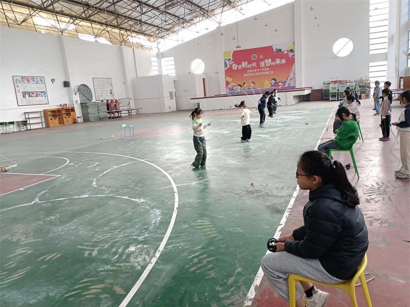 为进一步贯彻落实“双减”工作,推动小学阳光体育运动,切实增强学生体质,培养学生进取精神。11月22日下午,我校举行了“‘绳’彩飞扬 向阳生长”为主题的跳绳比赛。本次比赛“友谊第一 成绩第二”的原则,在规定的时间内完成次数多者获胜。小选手们个个精神抖擞,跃跃欲试,准备大显身手。