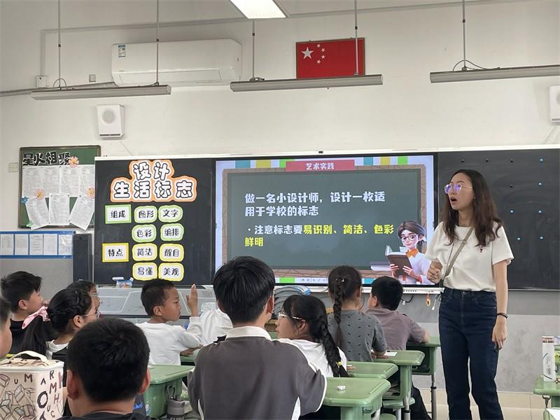 本次活动由齐一璠老师执教四年级美术《设计生活标志》,齐老师巧妙运用情境导入,为学生营造了一个轻松愉快的学习氛围。通过精心设计的游戏环节,学生们不仅快速掌握了标志的种类和特点,还深刻体会到了生活中各种公共标志的重要性,并自觉地去遵守它们。随后,齐老师引导学生们发挥创造力,一起为学校设计标志。如在设计“校园保护树木”时,用抽象化的树叶标志传递生命科学,学生在创作中深化了对生命多样性的理解。