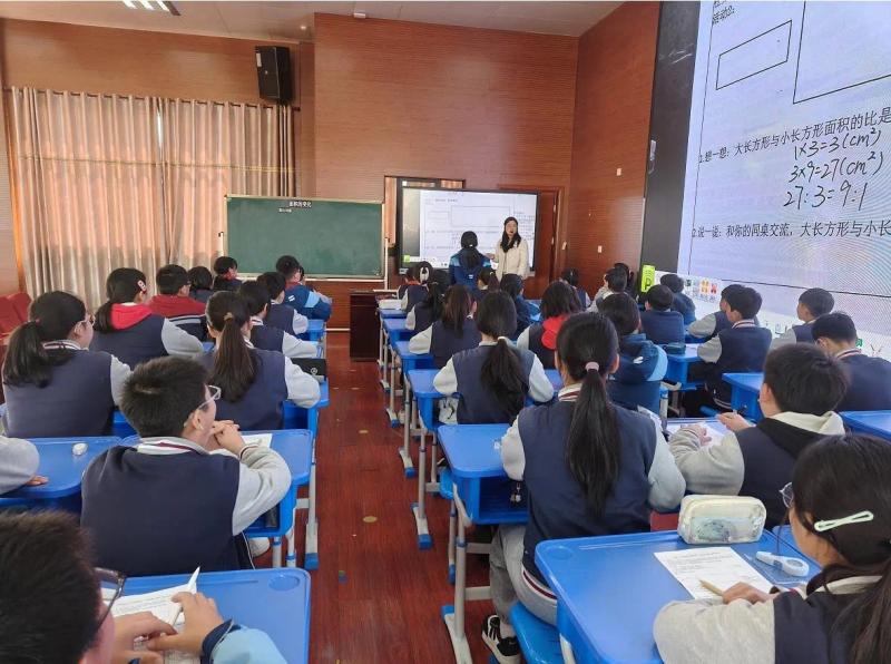 首先由蔡梦婷老师执教六年级《面积的变化》,蔡老师思路清晰,带领学生发展思维,深入探索面积的变化规律。沈瑞琪老师执教六年级《数的认识(总复习)》,沈老师准备充分,从计数单位的角度通过多样活动让学生感知数的认识的一致性,发展学生数学素养。
