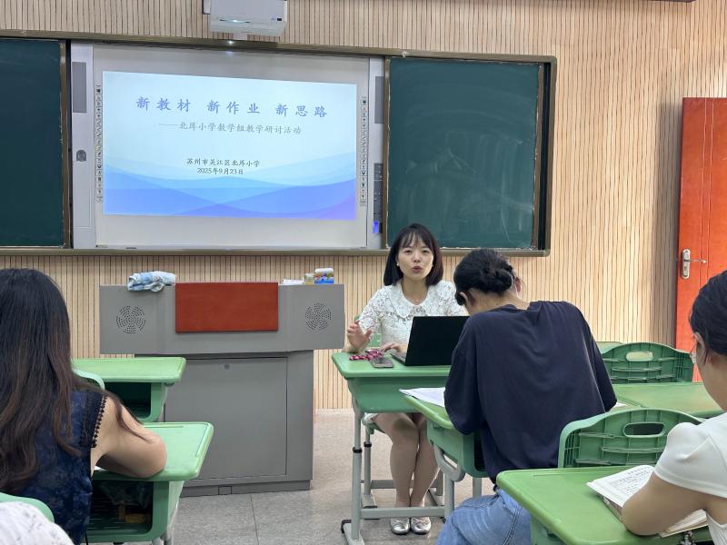 为探索新教材背景下作业设计与课堂教学的融合路径,9月23日,北厍小学数学组开展“新教材 新作业 新思路”主题教研活动,本次活动诚邀吴江经济技术开发区天和小学副校长金怡婷老师来校指导。