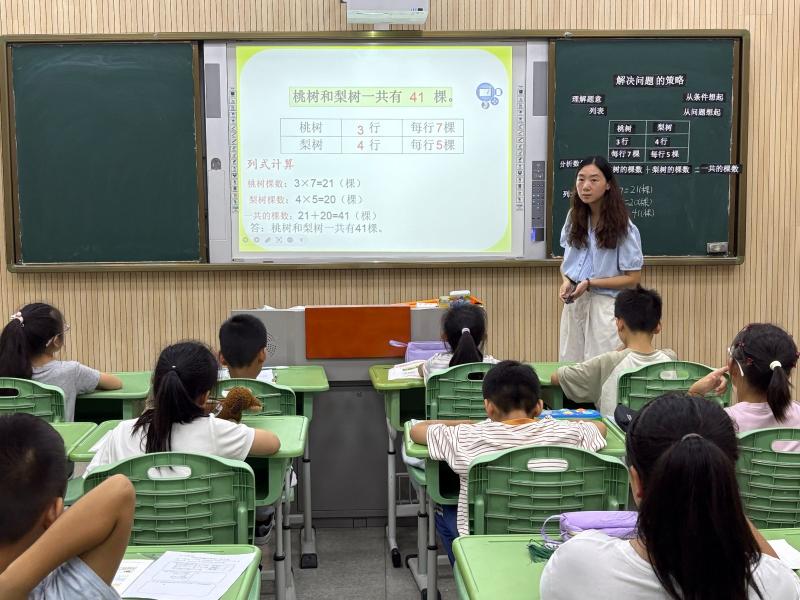 钱星蕾老师与陆贞亚老师均展示了四年级上册《解决问题的策略》一课。钱老师通过板贴整理条件的互动形式,引导学生集思广益,逐步感知表格整理信息的优势;陆贞亚老师则展示学生多样化作品,以对比凸显表格的简洁性,还从条件、问题双角度梳理信息,与复习导入形成巧妙呼应。课后研讨中,老师们肯定两位教师亮点:钱老师重细节打磨,陆老师强逻辑统一,且均以复习自然衔接新课;同时建议结合学生熟悉的真实场景,强化列表策略的实际应用。